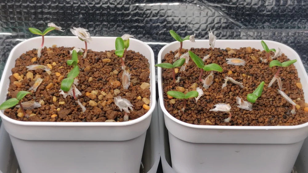 播種後3日目で発芽を開始して数日でほぼ発芽完了し双葉まで成長しました。