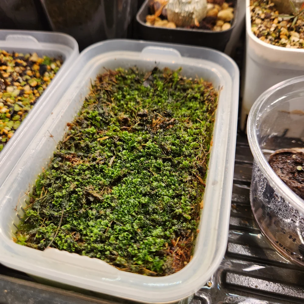 給水した水苔ベースに粉状べラボンを被せ胞子を撒きました。