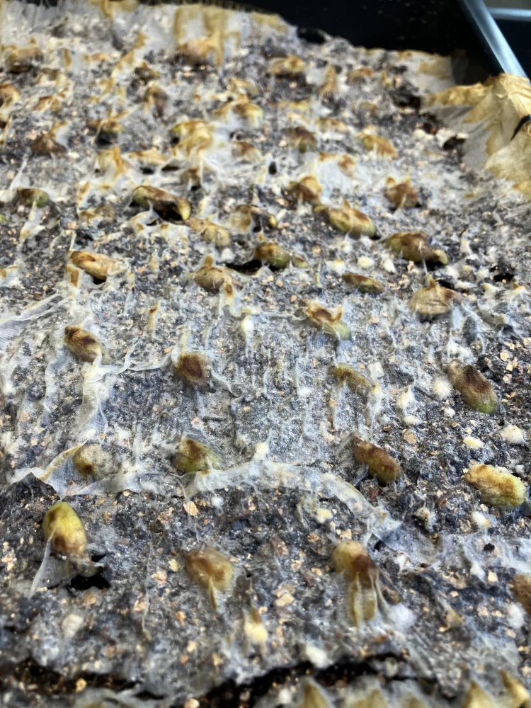 寒いので心配してましたが、順調に根が出始めているので来週くらいには続々発芽しそうです。