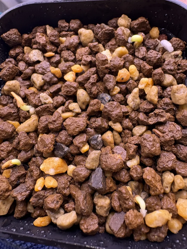 一般的な播種前の処理後、赤玉土主体の用土に播種