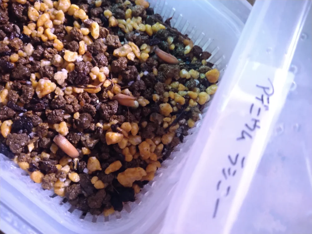 種まき用土と鹿沼土、赤玉土を混ぜた。