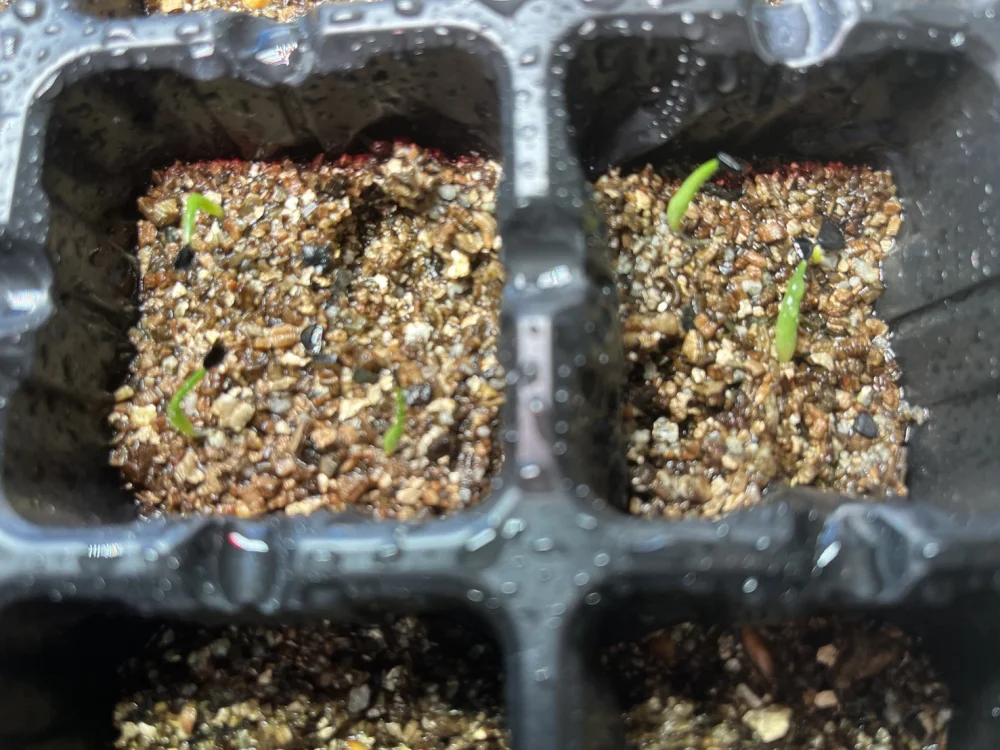 土は種まき用土を使用し、腰水管理。一日だけラップで密閉してましたが、別部屋のパキポがカビまくったので翌日ラップを外してます。