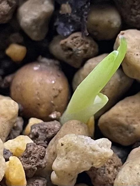 他の種は全部カビましたが 一粒土の下の方に埋まってたやつが発芽してきました