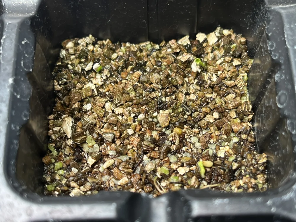 ベンレート+メネデール水に一日浸した後に種まき用土にお試しで5つ播種