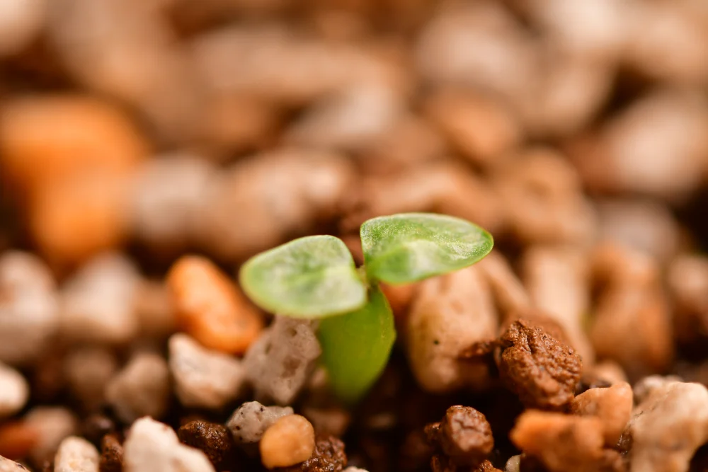 用土は赤玉、軽石だけ。熱湯消毒して温度が下がってから播種。