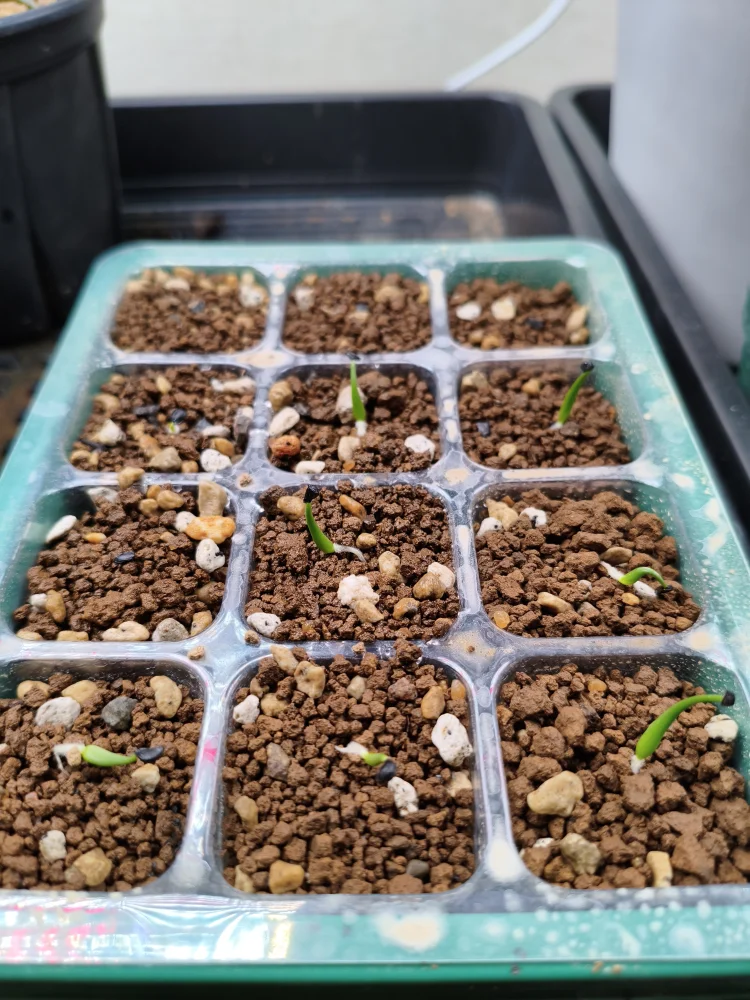 すぐに発芽するらしいと情報でしたが、発芽しなかったので蓋して湿度高くしてやったらすぐに発芽しました。