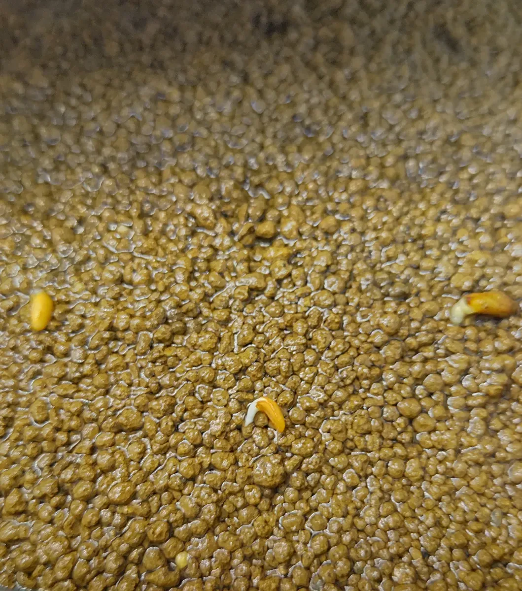 発根した数は合計13個になり、とても良い種でした。 全14粒のうち発根は13粒、カビ1粒。 発根した13粒のうち2粒が途中で蒸れて葉が出ないまま枯れ、1粒は根が出たものの殻にカビが生えてしまい、葉が無くなってしまいました。(3枚目の写真) 成長出来るか分かりません。