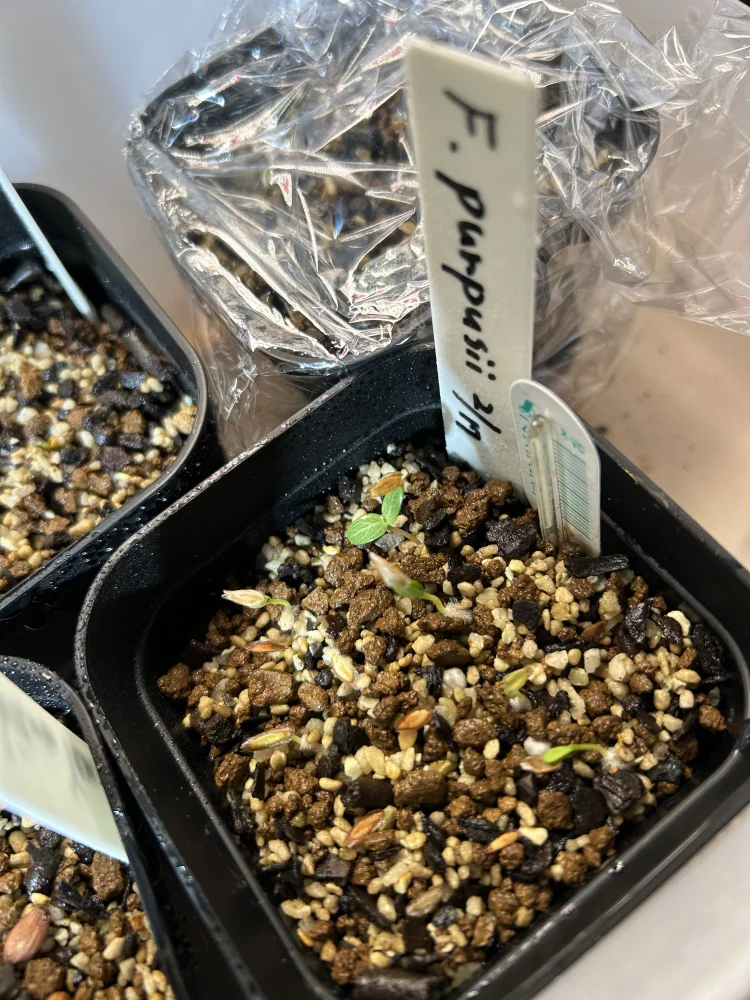 メネデール&ベンレートに10時間。多肉植物用の土に種蒔き。腰水で朝夜霧吹き。ラップで保湿。びしょびしょにはならないように気をつける。2日目から発芽、最終的には全て発芽しました!