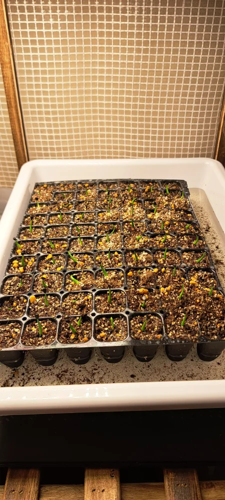 種まき用土は軽いのですが根は浮いてしまいました。赤玉で軽く覆土したときは浮きにくかった気がします。