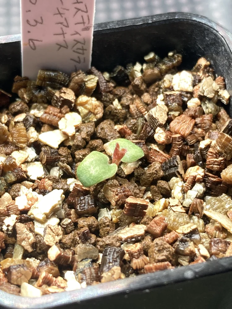 市販の播種用土に表面は赤玉とバーミキュライトのミックス、熱湯消毒ありです。