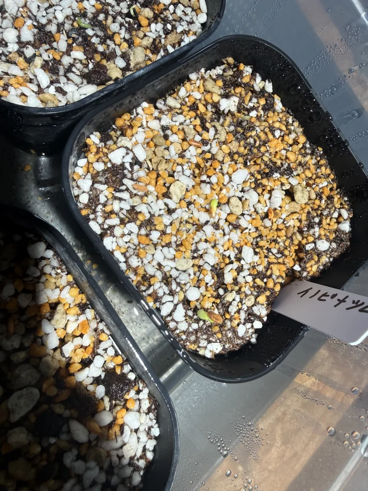 あと一つで100% 残り一つもブリュレみたいになってないから、まだチャンスあると思ってます。 同日からグラキリスとマカイエンセはまだ1つも出ない。 ただ、以前メルカリで買った安いタネはカビばっかり生えたけどシードストックで購入したのは全くカビは生えない。