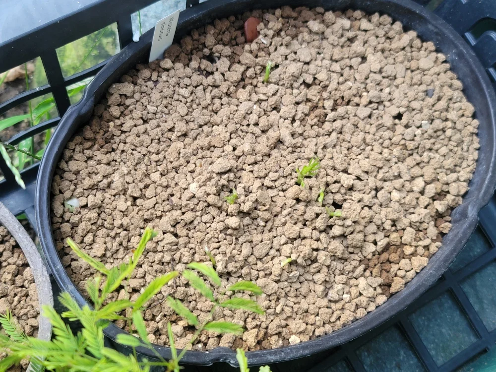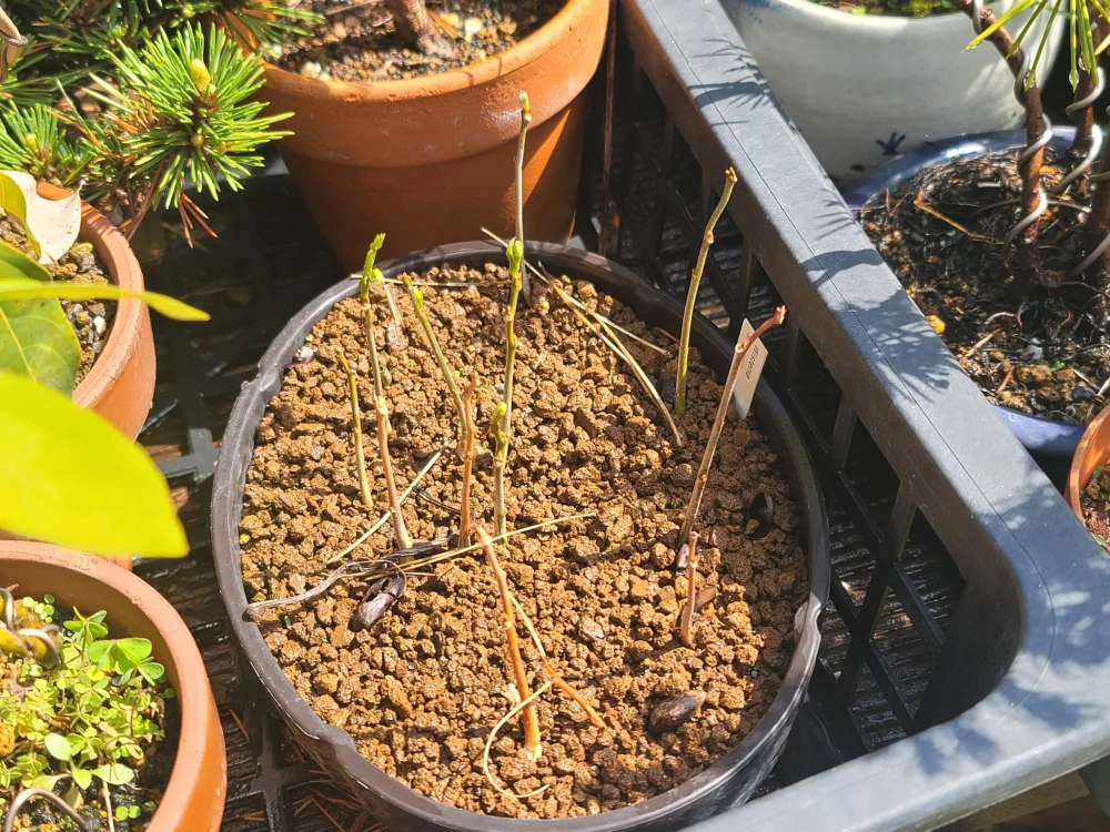 ここ数日の間に芽吹いてきたので取り蒔き後特別な管理は特に必要なく、年中野外管理で問題ないことを確認しました