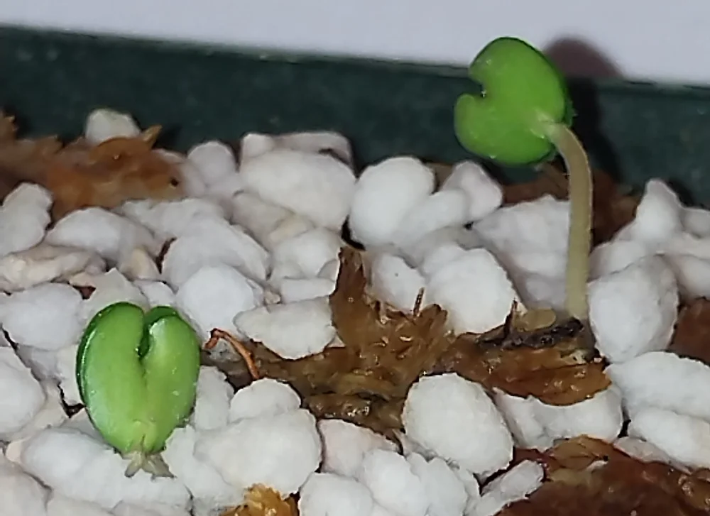 - 種まき用土水苔の上に播種、置き薄く土(パーライト+ゼオライト)をかぶせる(lightが必要な種子なので表面〜0.5~1cm程度)。