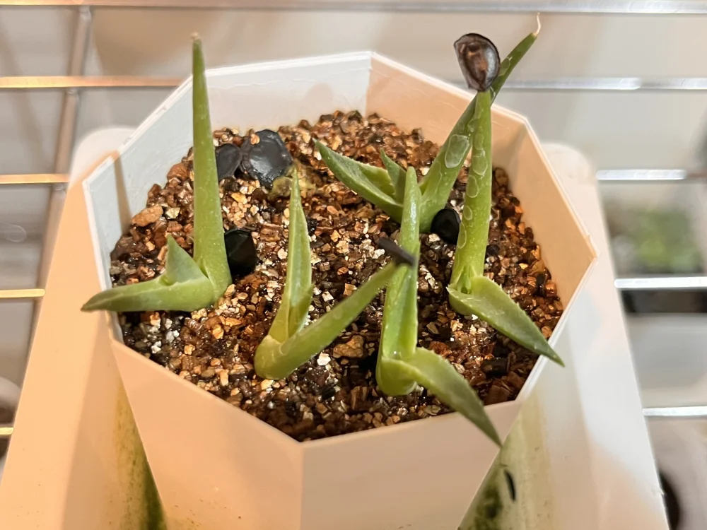 第一陣が4/6粒、第二陣が5/6粒で9粒の発芽。