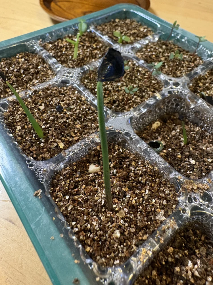 メネデール+ベンレート希釈液に15分ほど浸し、バーミキュライトに播種。