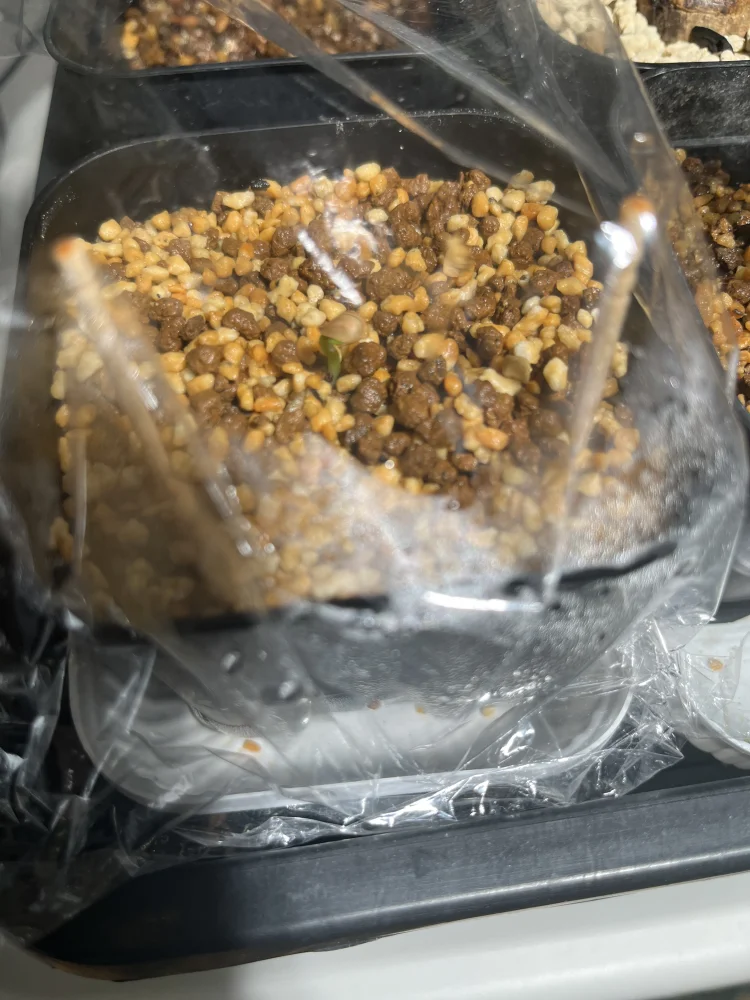 ヒーターマット土温度30度、ラップで少しだけ隙間ありの状態で10日で1つです