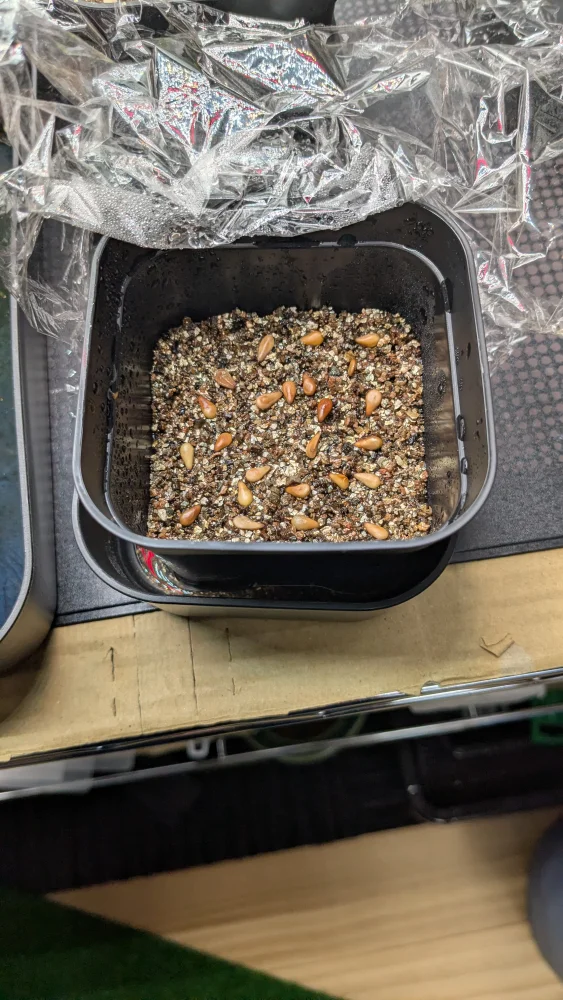 バーミキュライトに腰水管理、湿度100%でヒートマットに設定は33度にて。