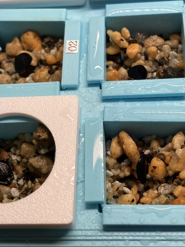 用土は赤玉、日向、鹿沼、もみがらくん炭、珪酸塩白土を使用してみた