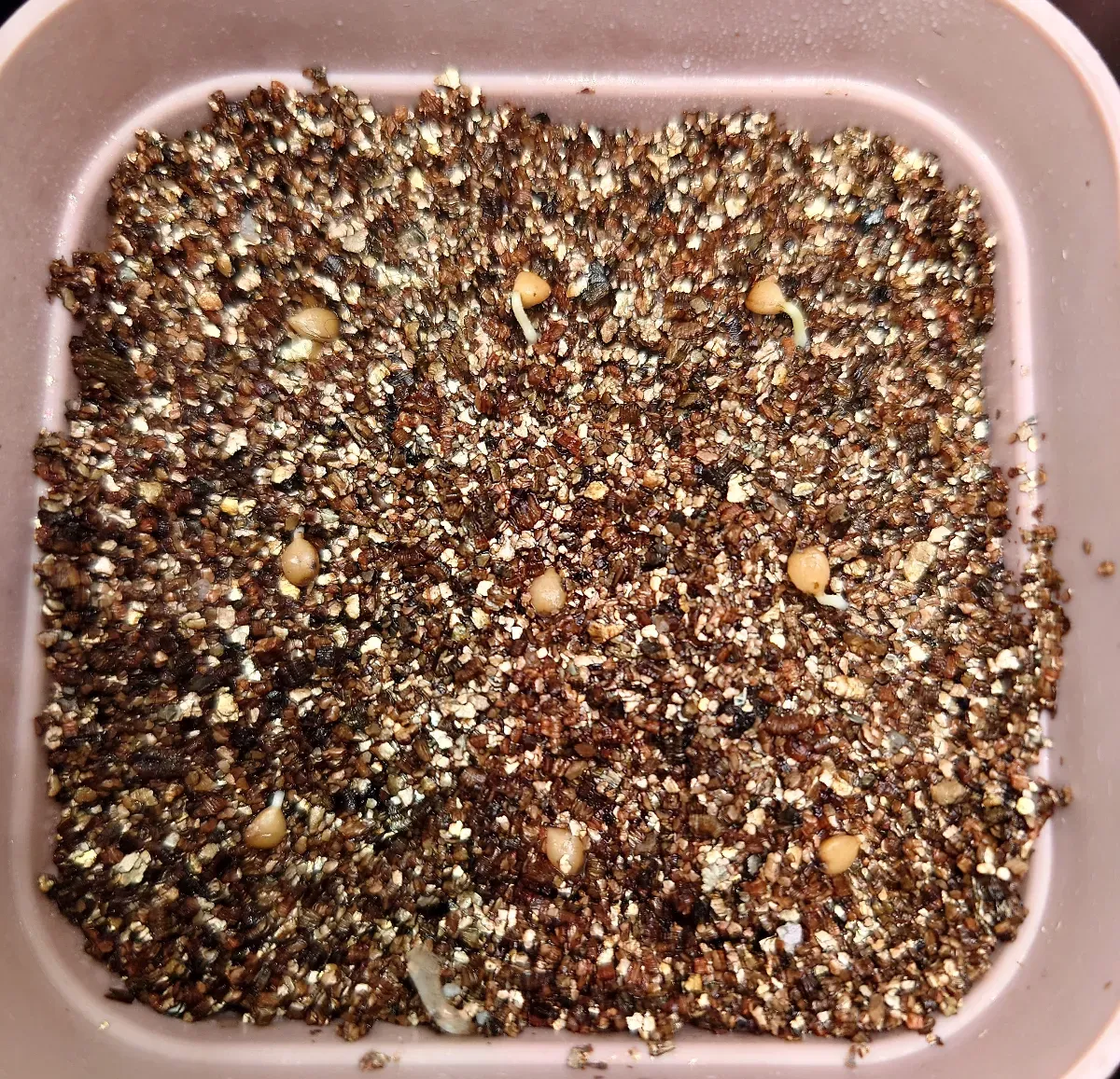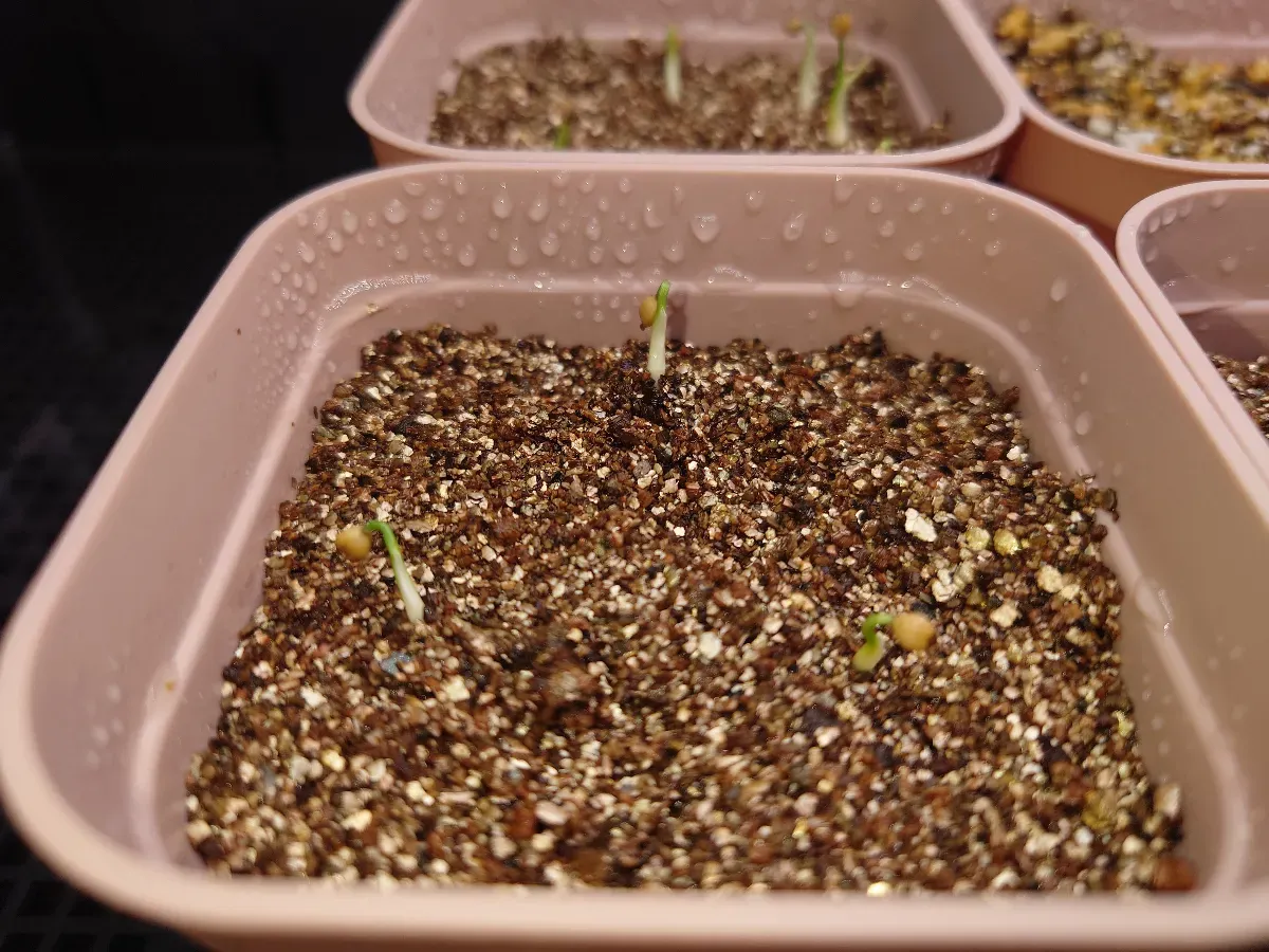 以前発根したものは伸びてきました。1つ遅れて発根した種子があるので、もしかしたら残りも発根するかもしれません。