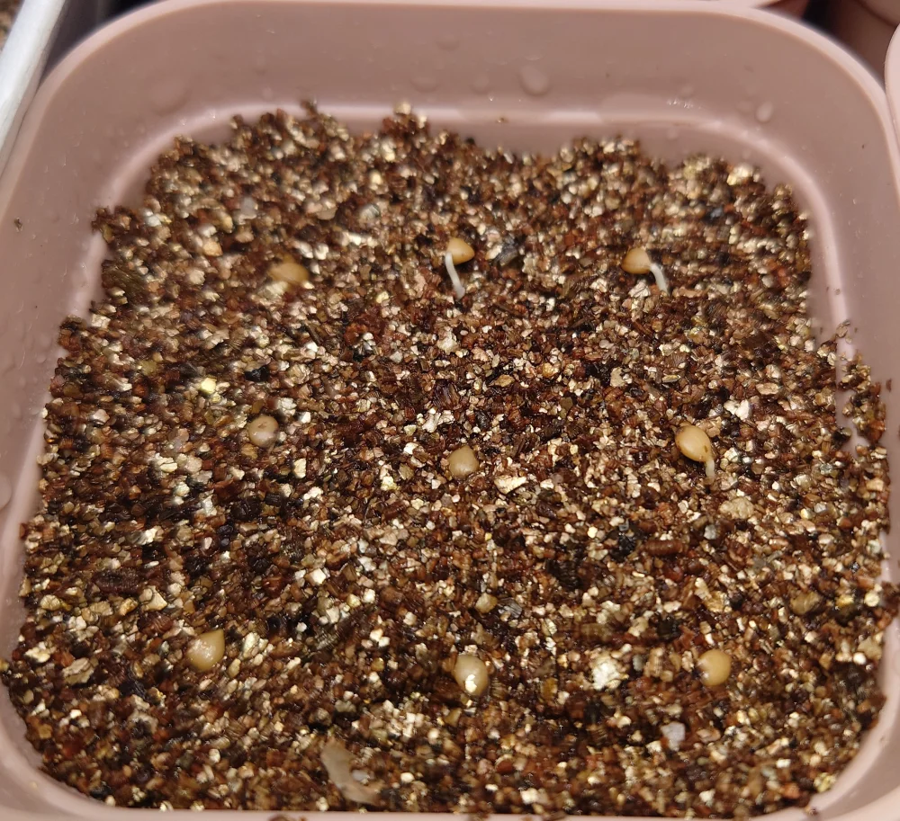 挿し木用の細粒の鹿沼土の上に薄くバーミキュライトを敷いたところに播種。