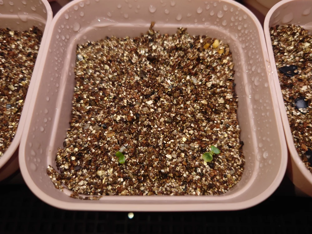 挿し木用の細粒の鹿沼土の上に薄くバーミキュライトを敷いたところに播種。