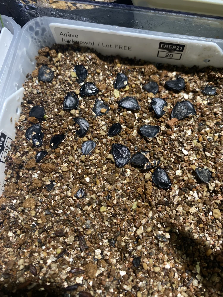 初アガベだったのでやはり難しいか…と写真を撮って確認していたら発芽しているのに気付いたので1ヶ月経っても諦めなくて大丈夫そうです。