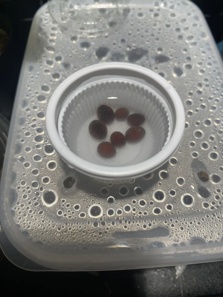 今日掘り返して見てみたらカビていたのでダコニール溶液で再度消毒して蒔き直してみます。