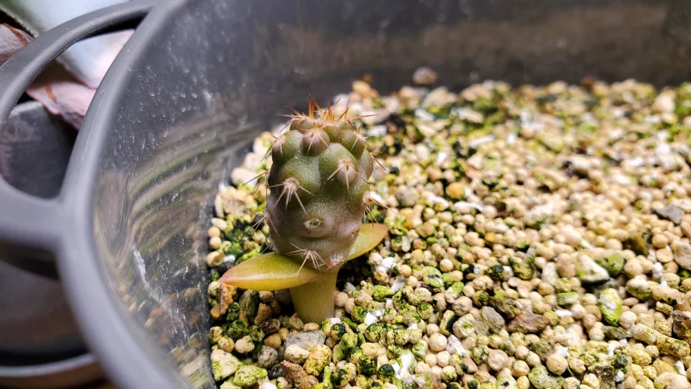 殻を外し、DCMの多肉植物用の土に播種し、ラップした。
