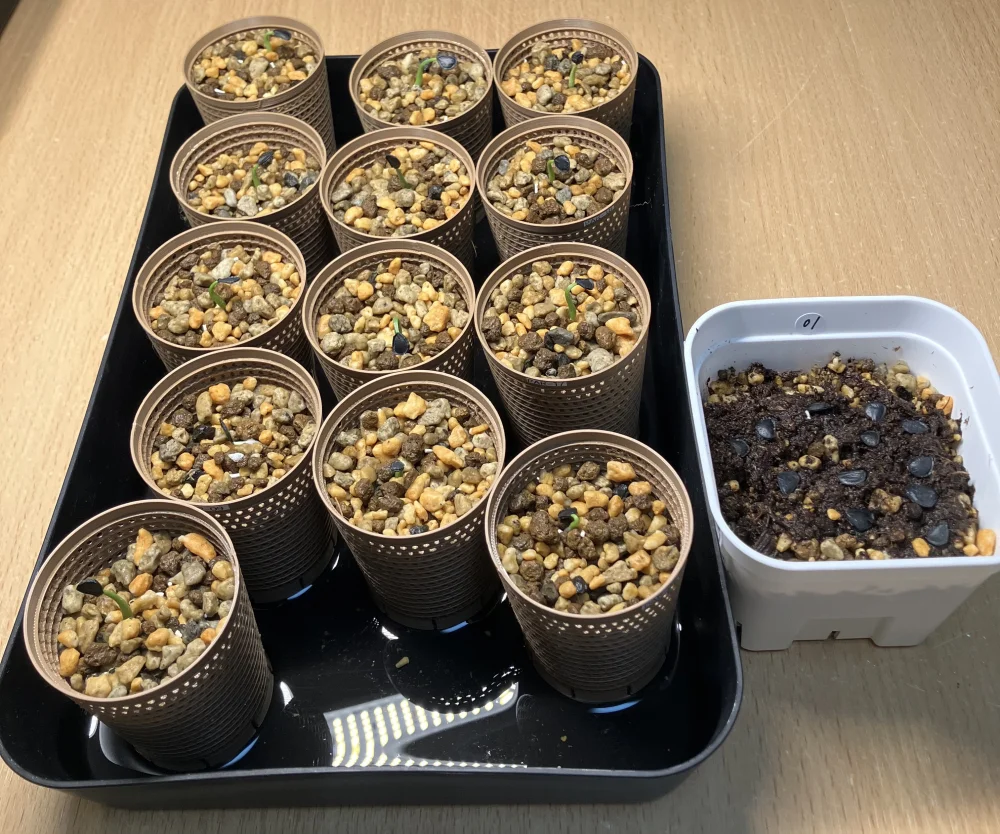 残りの種も発芽の様子を見守っている