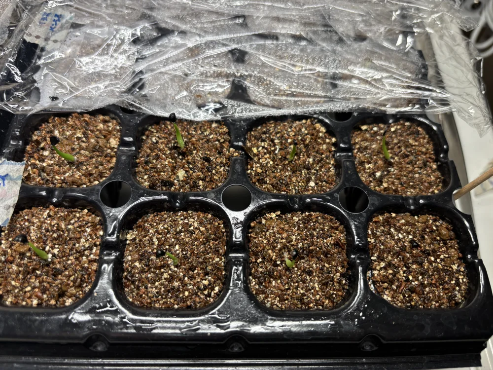 芽が伸びてきたので卵パックをかぶせて湿度管理中