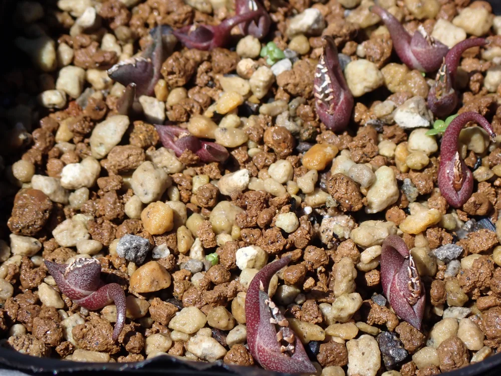 1日メネデール水につけた後、赤玉、軽石用土に少し種が見える程度に埋めて播種。
