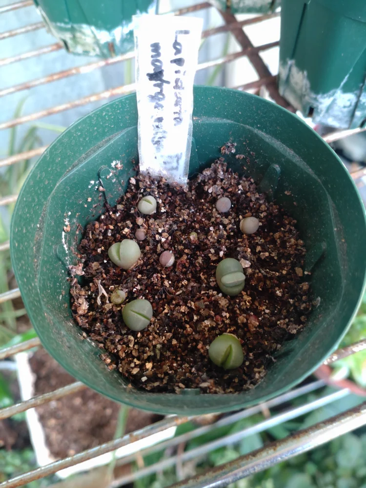 多肉植物用の用土の上にバーミキュライトの層を作り、その上に播種。覆土なし。発芽するまでラップで保湿。4-5ヶ月は腰水。