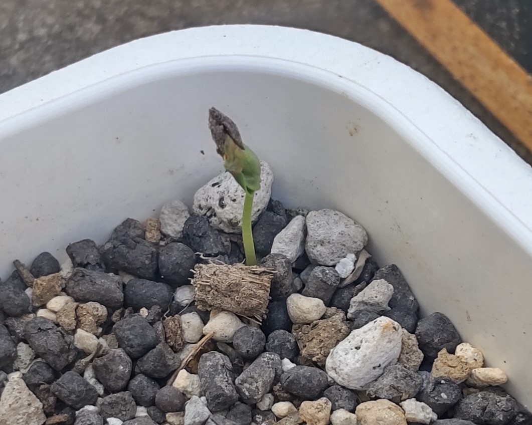 パッシフローラ エデュリス 未経験の種子でよくわからなかったので、5/1日にベランダの空プランターにバラバラと蒔いてみました。本日6/26日 覗いてみると一粒発芽していました。発芽率は10%ですが、ちゃんと管理すればもっと良くなるかも?
