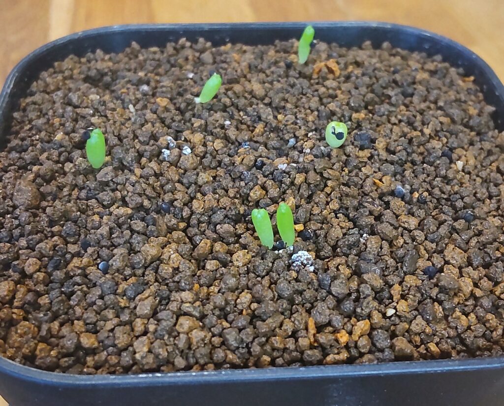 8/1日に直接プレステラに蒔いて10日目です。小さくて何粒あったか数えられなかったですけど10粒として60%の発芽率になるでしょうか? 良いのか?