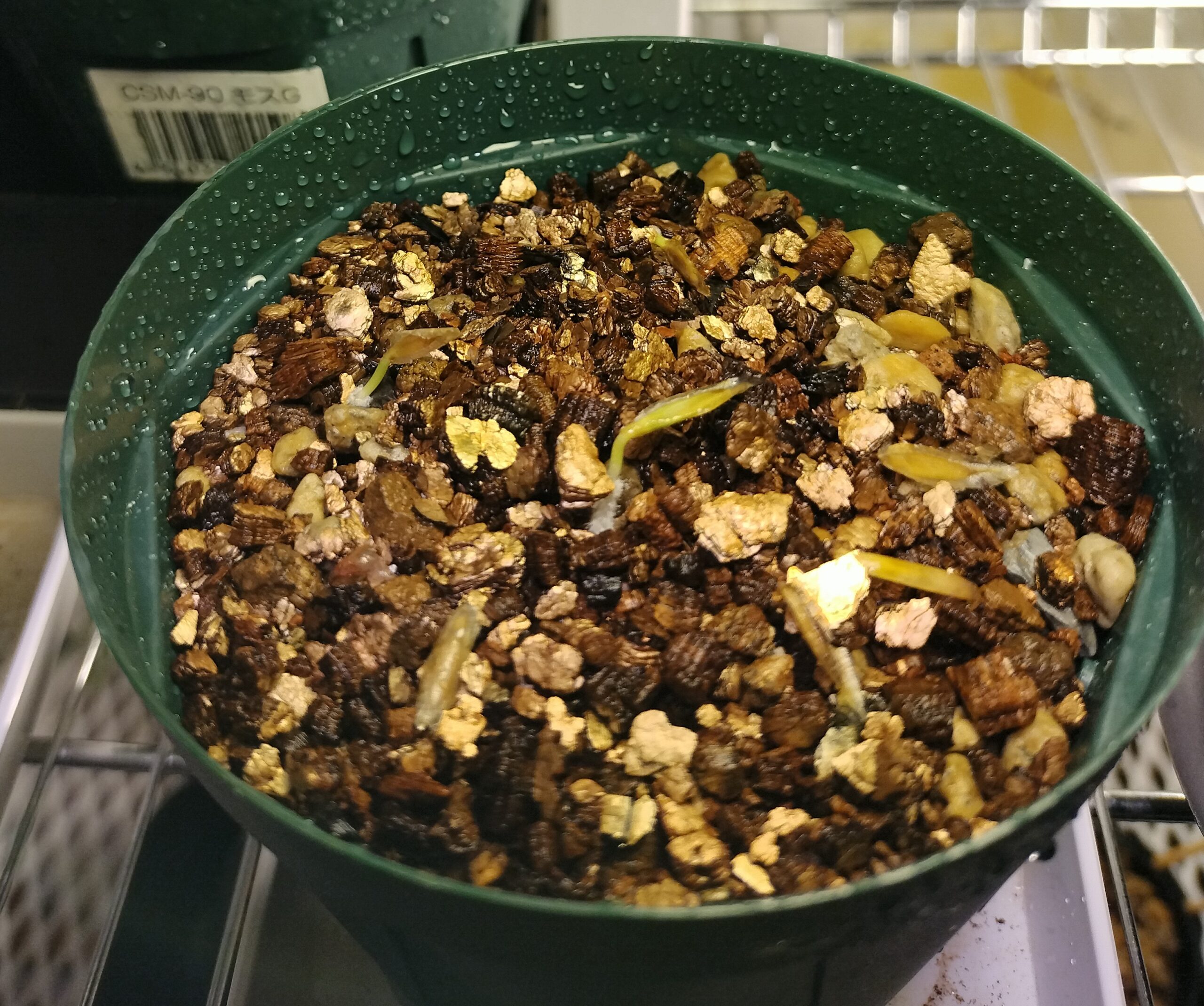 8/27に10粒種まき後、8/30に4つ発芽しました。