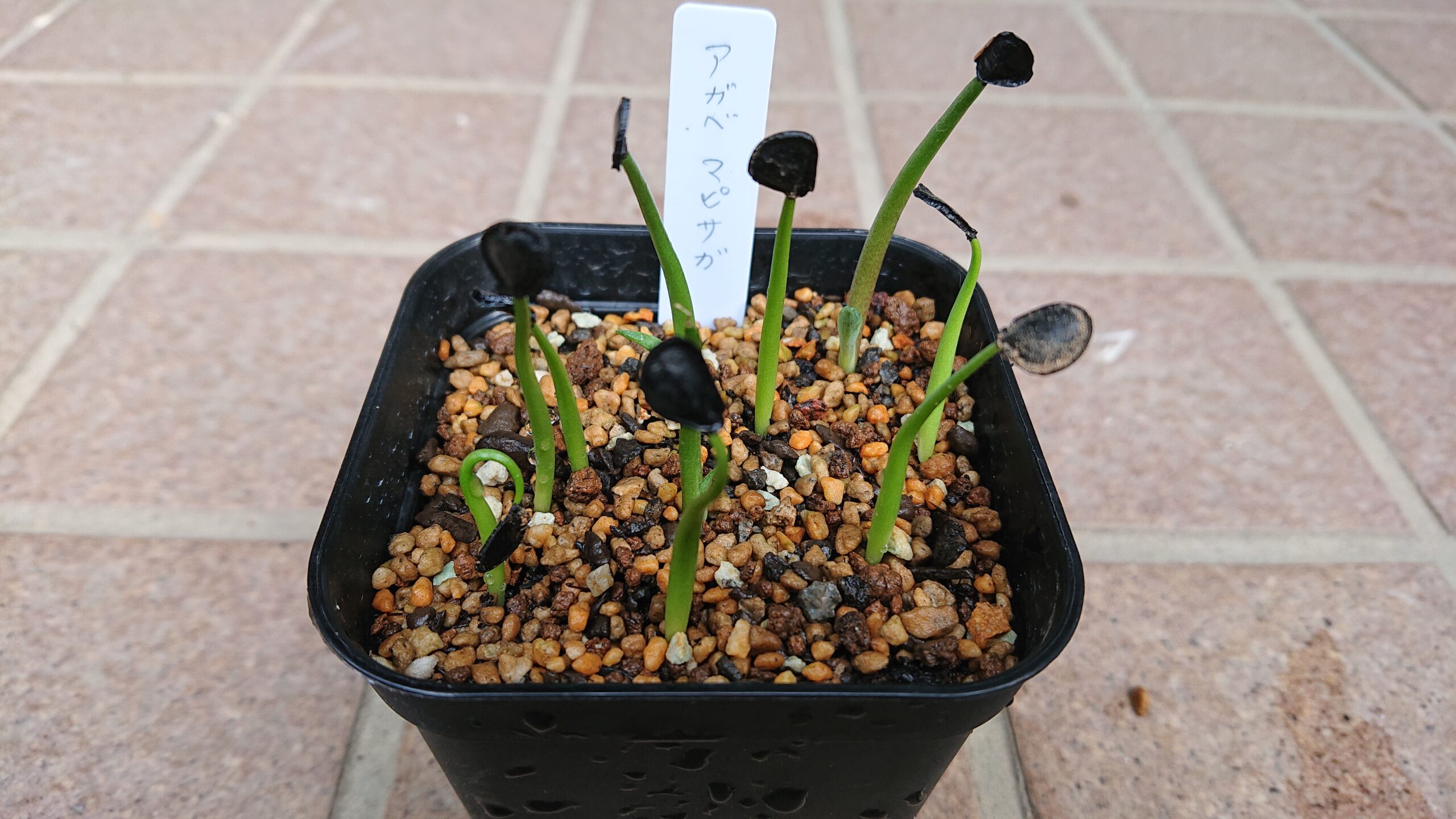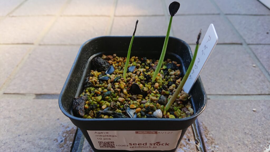 用土:サボテン用土細粒、熱湯消毒処理:ベンレート2000倍+メネデール100倍液、半日浸水管理:腰水、ラップ、遮光播種日:8/13発芽日:8/25(随分かかりました。)発芽率:23%(3/13)