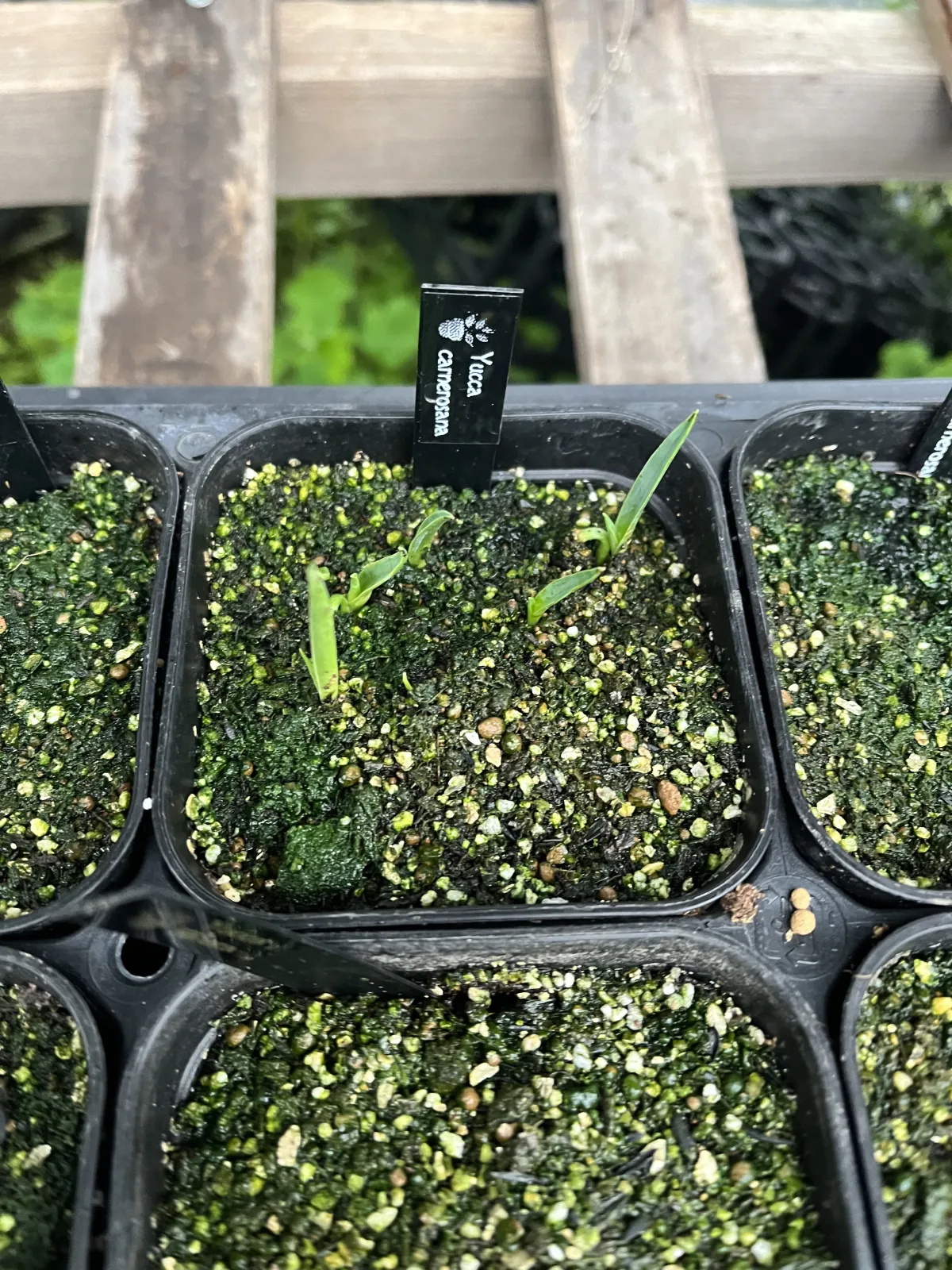年末セールで購入のユッカ。発芽率は50パーセントほどです。温室に放置状態でも発芽しました。