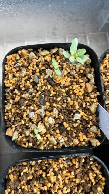 去年から含めて3回目、20粒撒いてやっと3つの発芽がありました。しかし一番最後に出てきた小さな芽のやつは育成不良か、翌日には溶けてしまいました。難しいです。