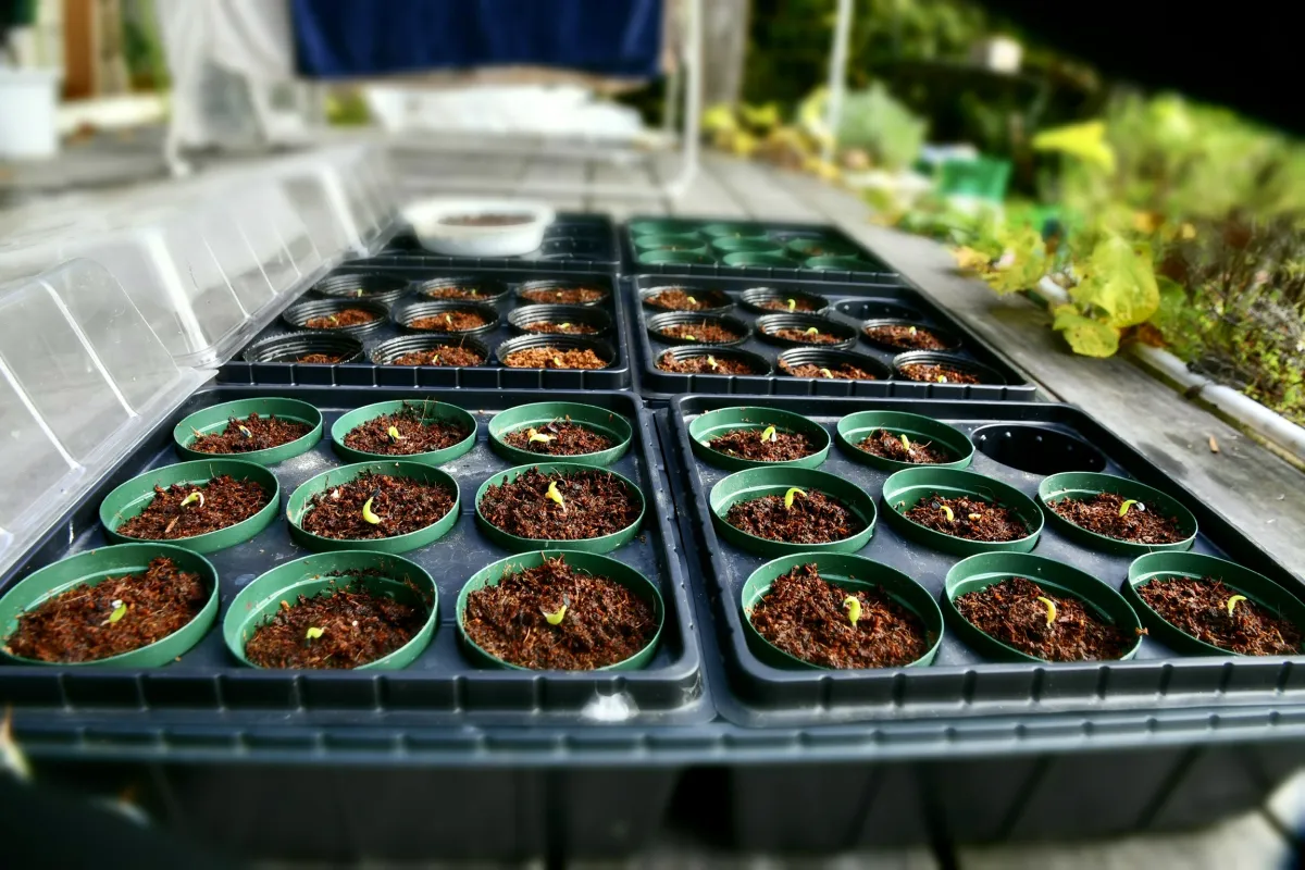 発芽後は順次直ぐにDIME種まきハウスで個室6cmポット&腰水管理。