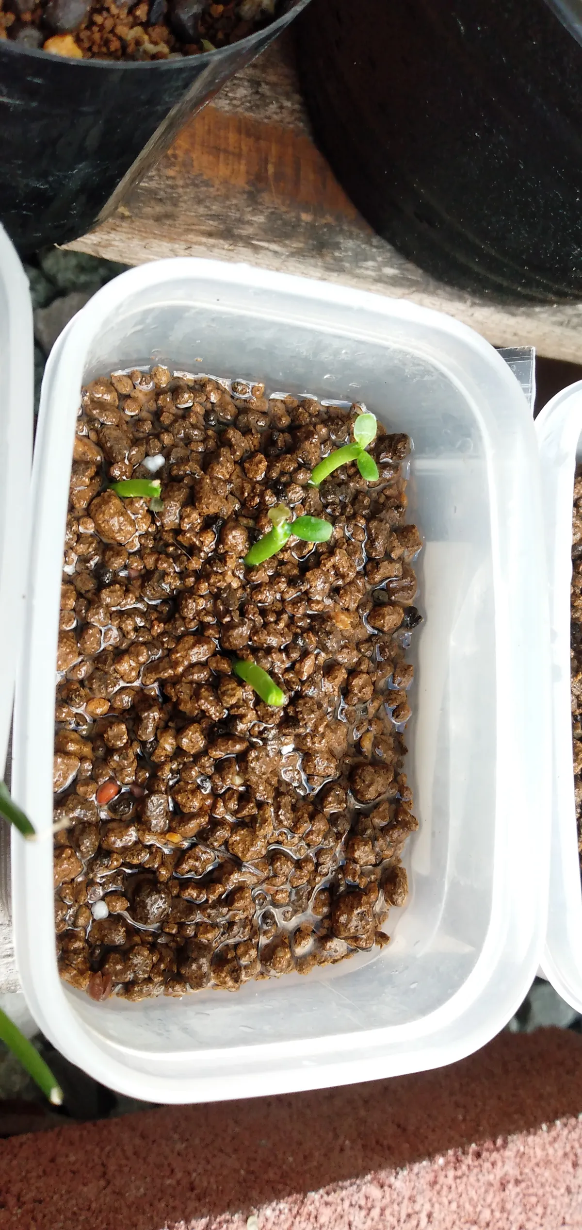 発芽後は蓋を外して屋外で遮光管理しています。