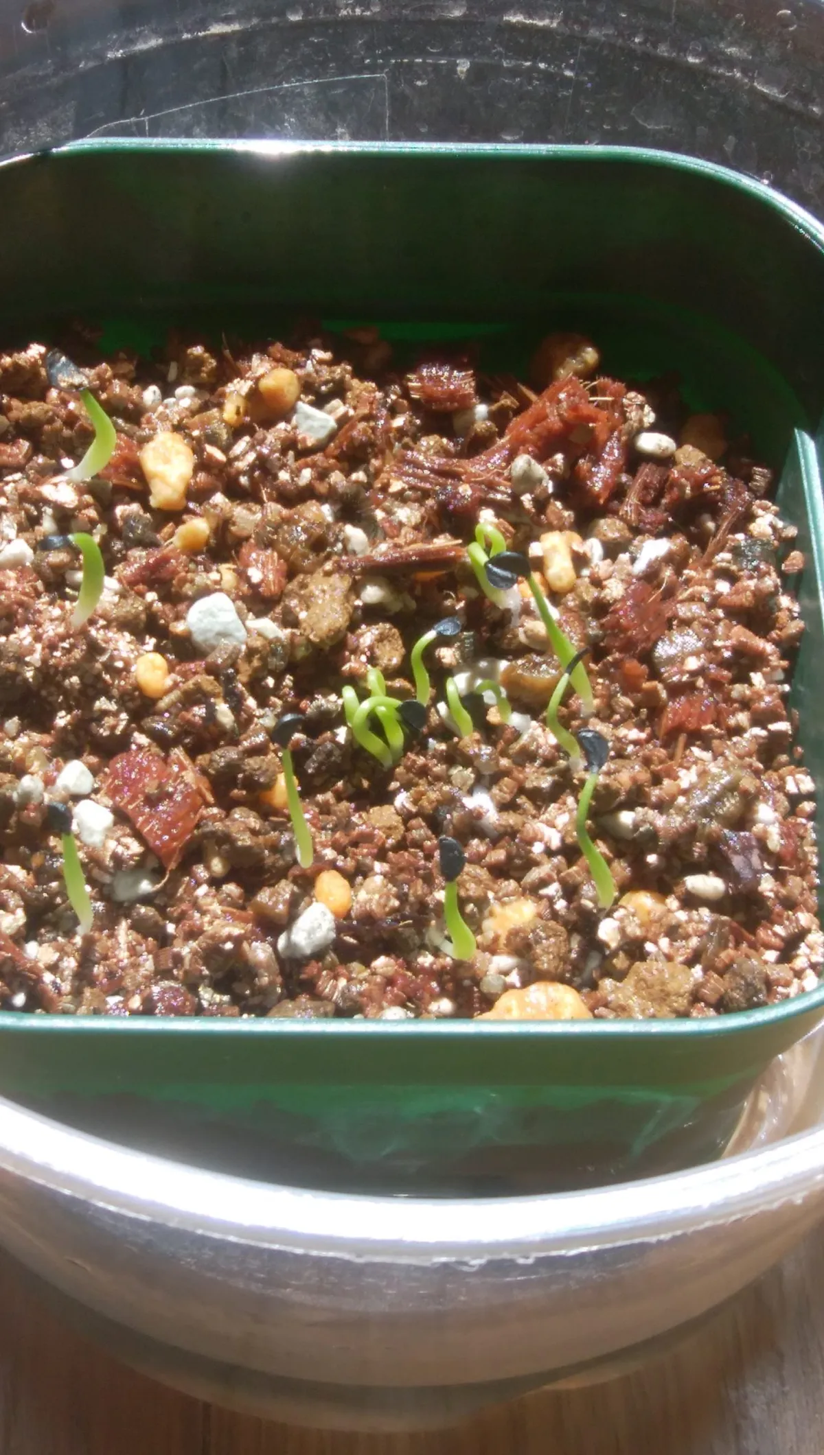 水に種を2日間程浸けて芽出ししてから、そのままドボドボと投入。