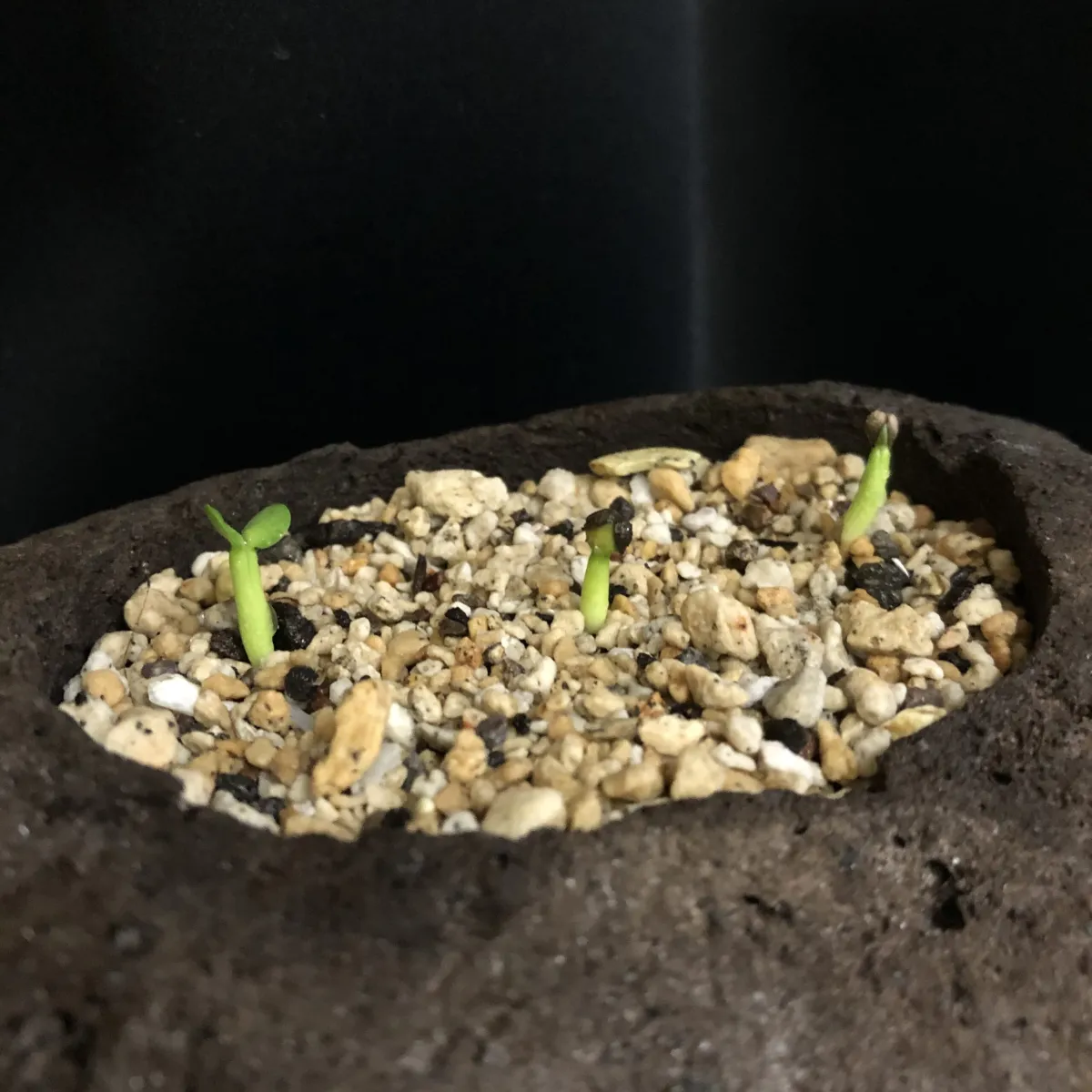 元気そうな三つを植え替え様子見中です(市販のサボテン/多肉植物用の土を使用)