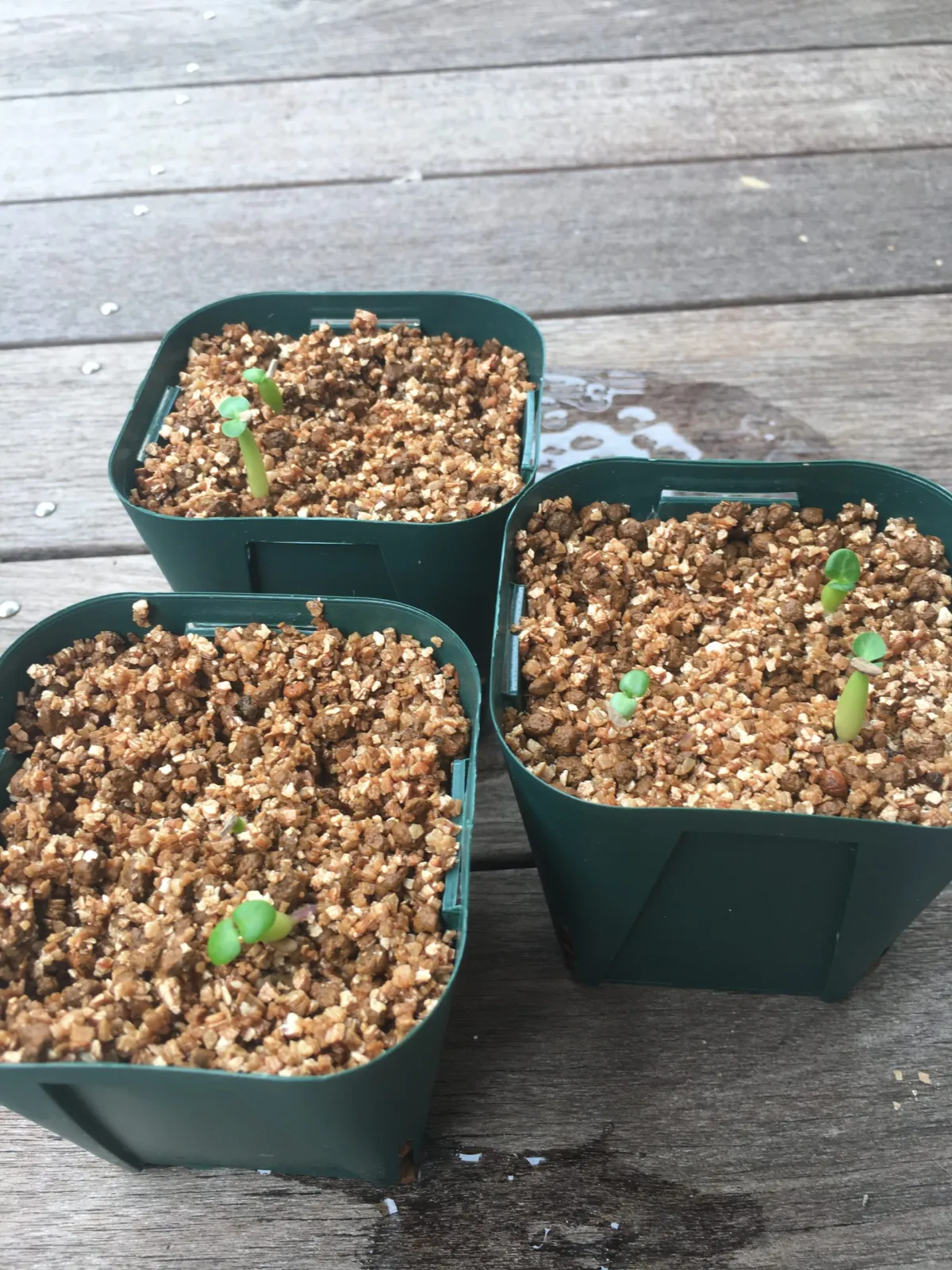ダコニール、メネデールに4時間程度浸けて、赤玉土とバーミキュライト1:1に蒔いて越水管理。