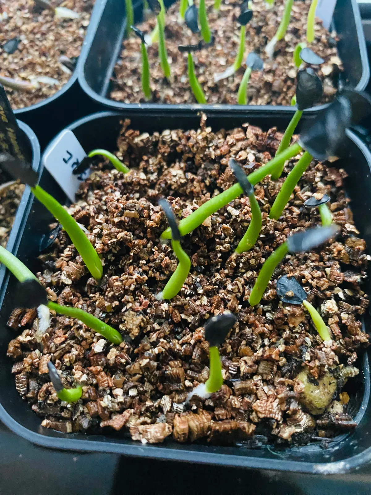 細目のバーミキュライトを敷き播種、20度〜25度で管理