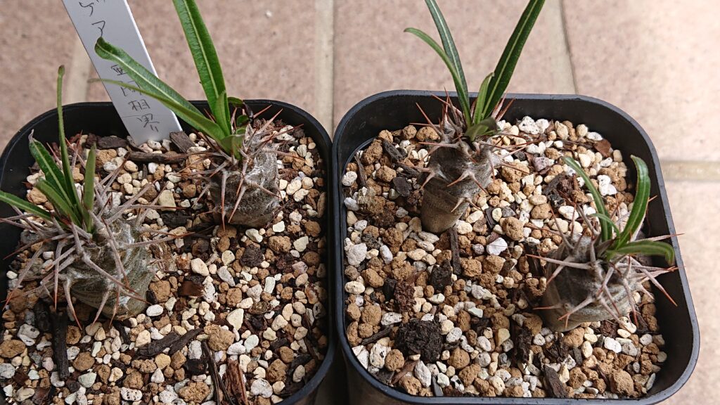 用土:サボテン用土細粒、熱湯消毒処理:ベンレート2000倍+メネデール100倍液、半日浸水管理:腰水、ラップ、温床マット、育成ライト播種日:R3/4/29発芽日:R3/5/1発芽率:31%(8/26)R3/5/23の状況(6本生育中です。)