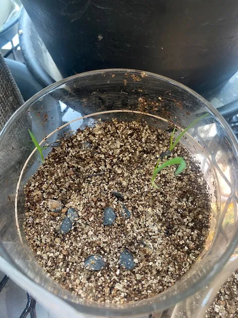 赤玉メインの用土に細目のバーミキュライトを敷き播種、25から30度くらいで管理