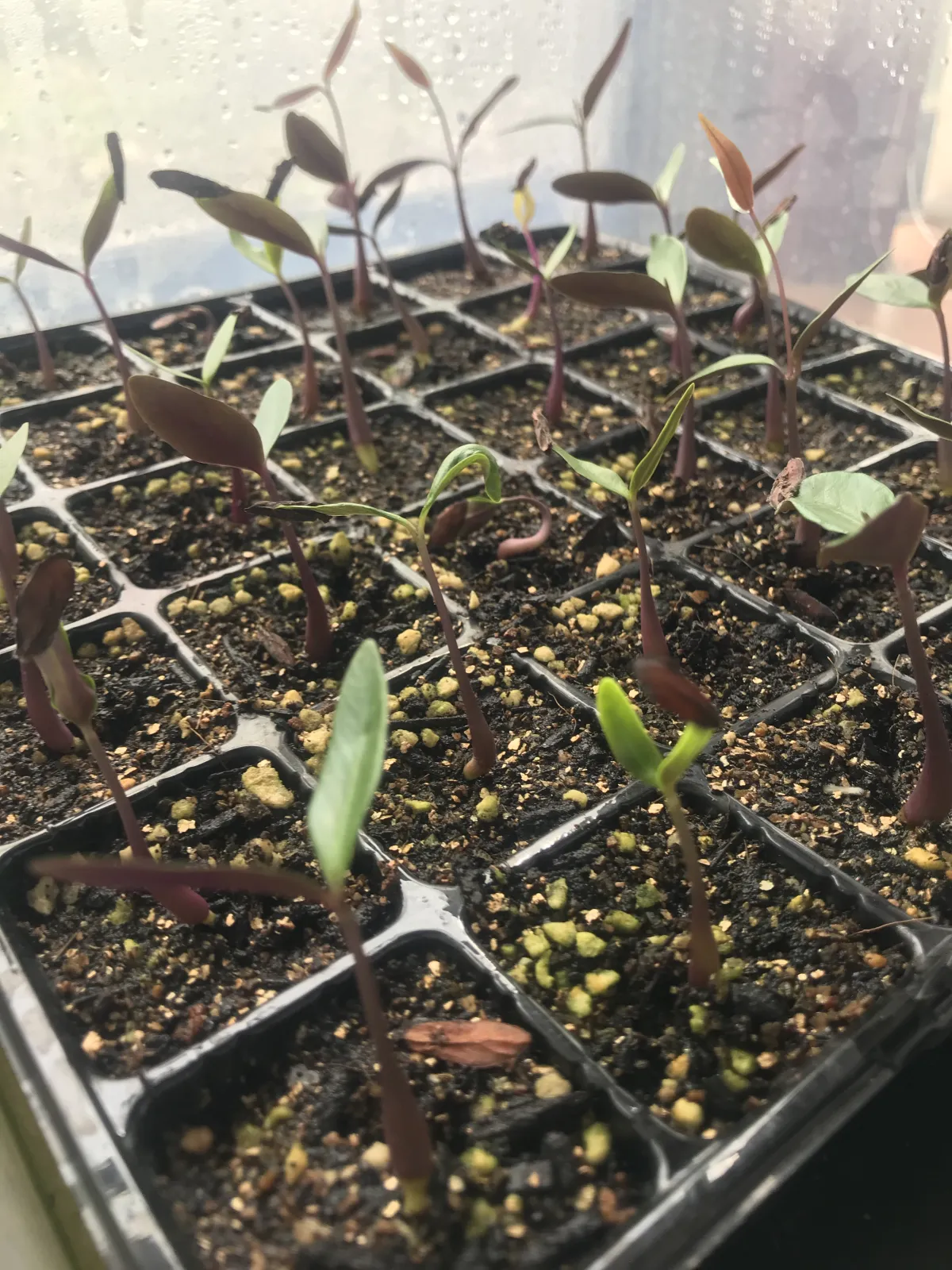 コメリの種まき用土に播種、昼から日没まで日の射し込む縁側で管理。無加温。