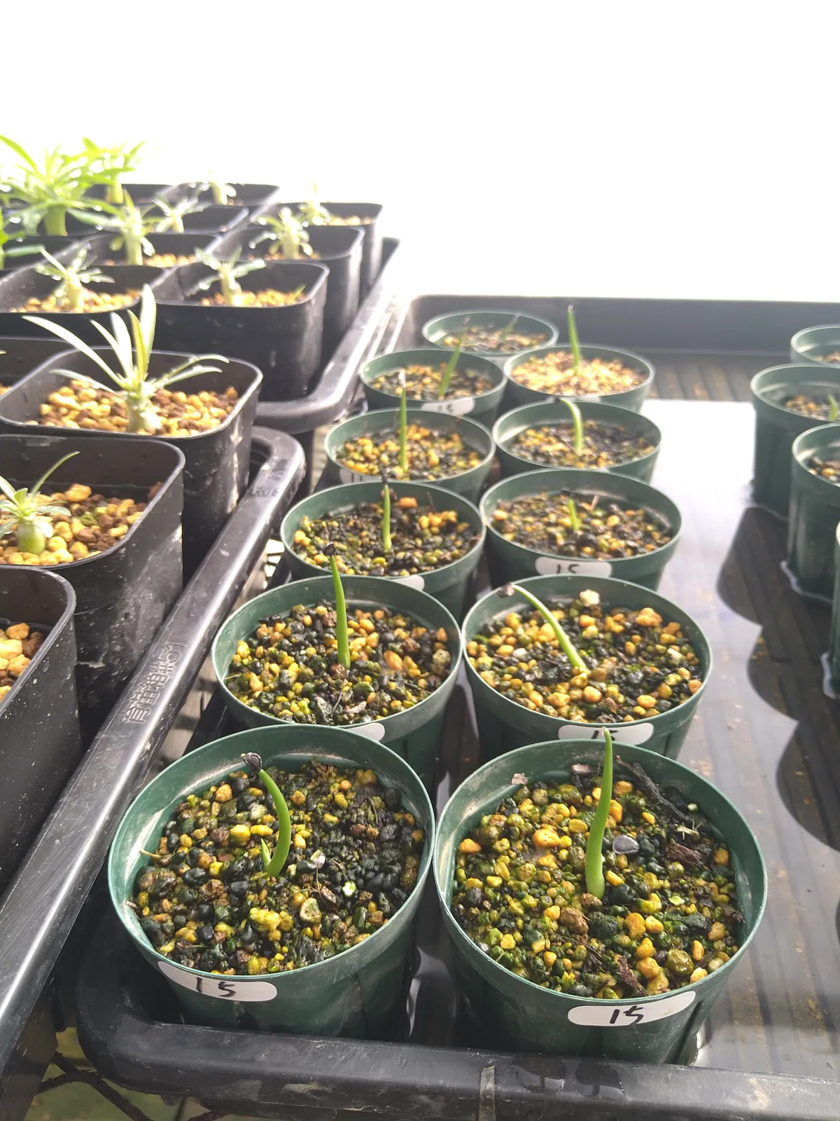 [ 播種日 / 撮影日 ] 2024/5/20播種 2024/6/8撮影 [ 播種数 / 発芽数 ] 12粒/ 11粒 [ その他(用土や管理方法など)] 播種前にダコニール+メネデール溶液に半日程度浸漬 赤玉土と鹿沼土ブレンド用土に播種 25度〜25度で管理