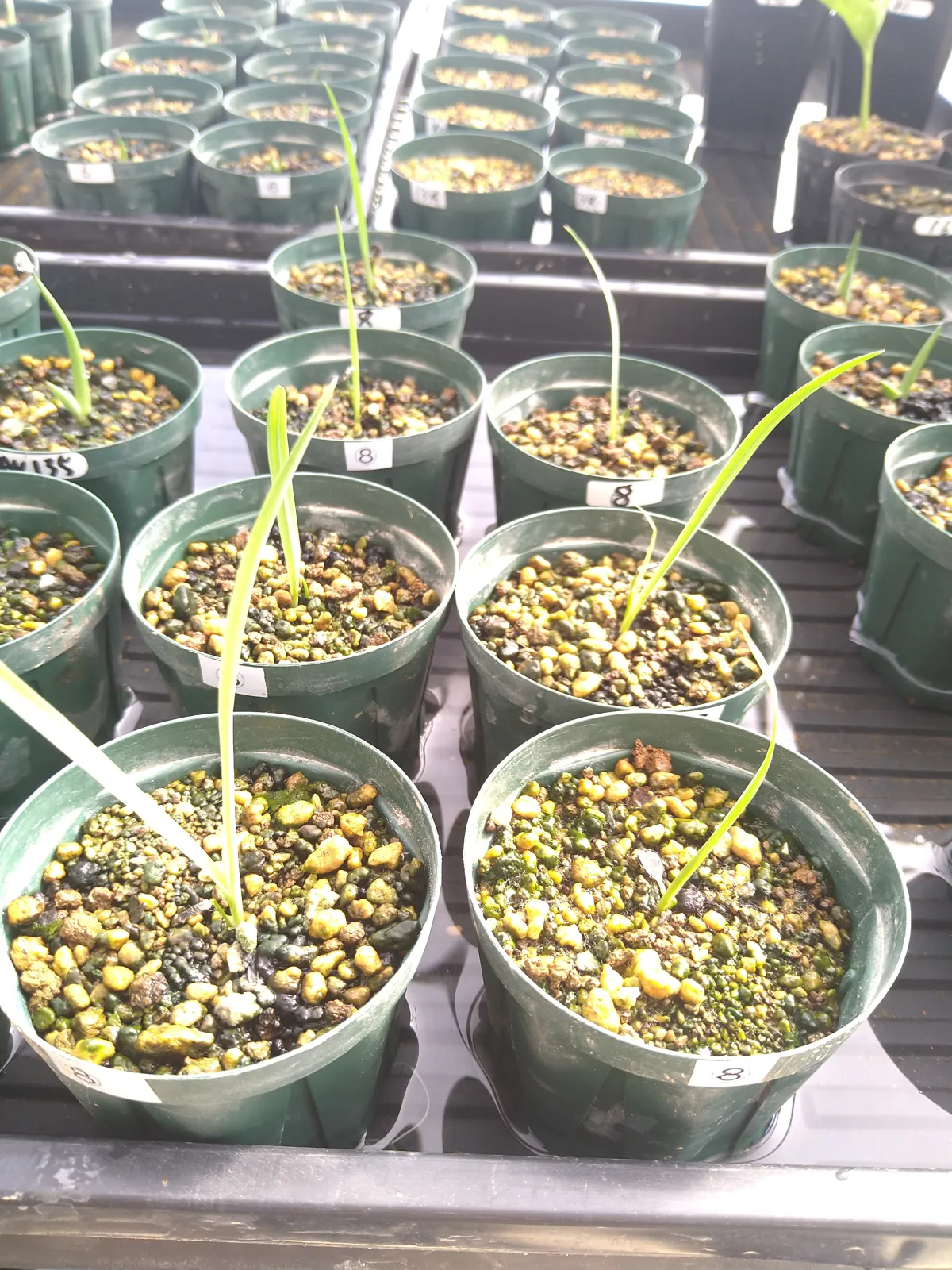 [ 播種日 / 撮影日 ] 2024/5/13播種 2024/6/8撮影 [ 播種数 / 発芽数 ] 12粒/ 7粒 [ その他(用土や管理方法など)] 播種前にダコニール+メネデール溶液に半日程度浸漬 赤玉土と鹿沼土ブレンド用土に播種 25度〜25度で管理