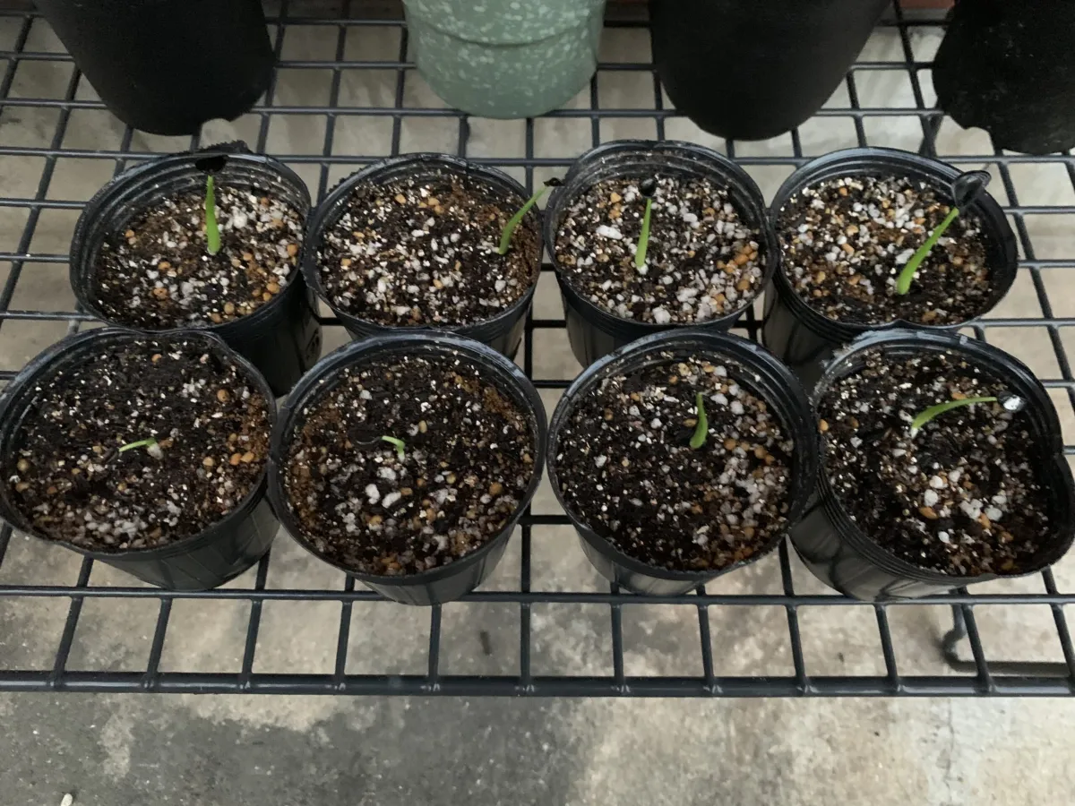 モニター用にいただいたもの。11粒中8粒発芽。大きい種より小さいのが頑張ってます。